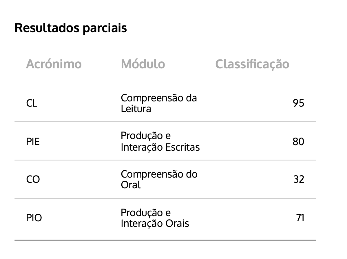 - Writing was not good for me - 59%, though I myself thought I did ok. Maybe the reason is that I probably just wrote in Spanish with Portuguese accent…