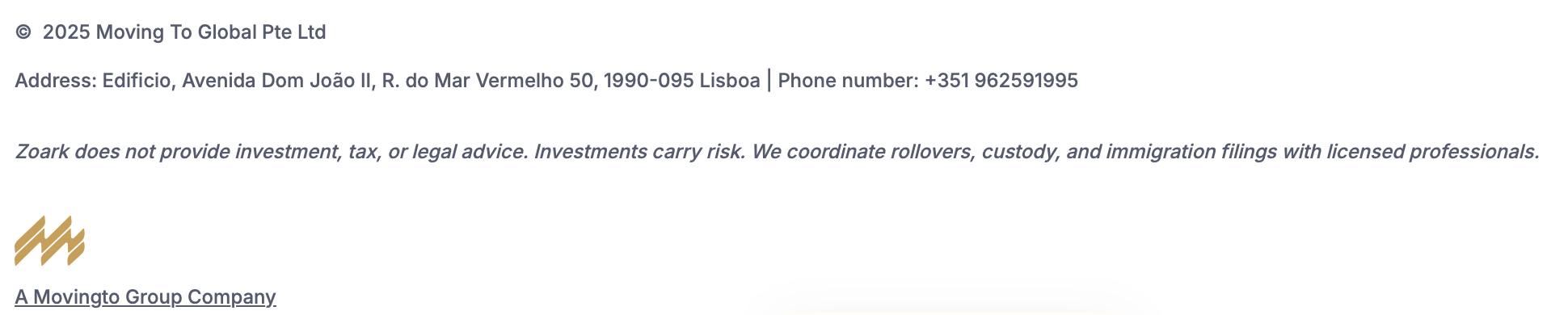 Well, continuing our Watergate-level journalistic investigation, let’s have a look at the footer of Zoark’s webpage: