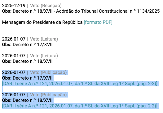 The Decreto n.º 17/XVII your GPT cites (or even Decreto n.º 18/XVII) are from January, right? Or maybe even what got partially shot-down by the TC last year? So they don’t include the past 3 months of haggling?