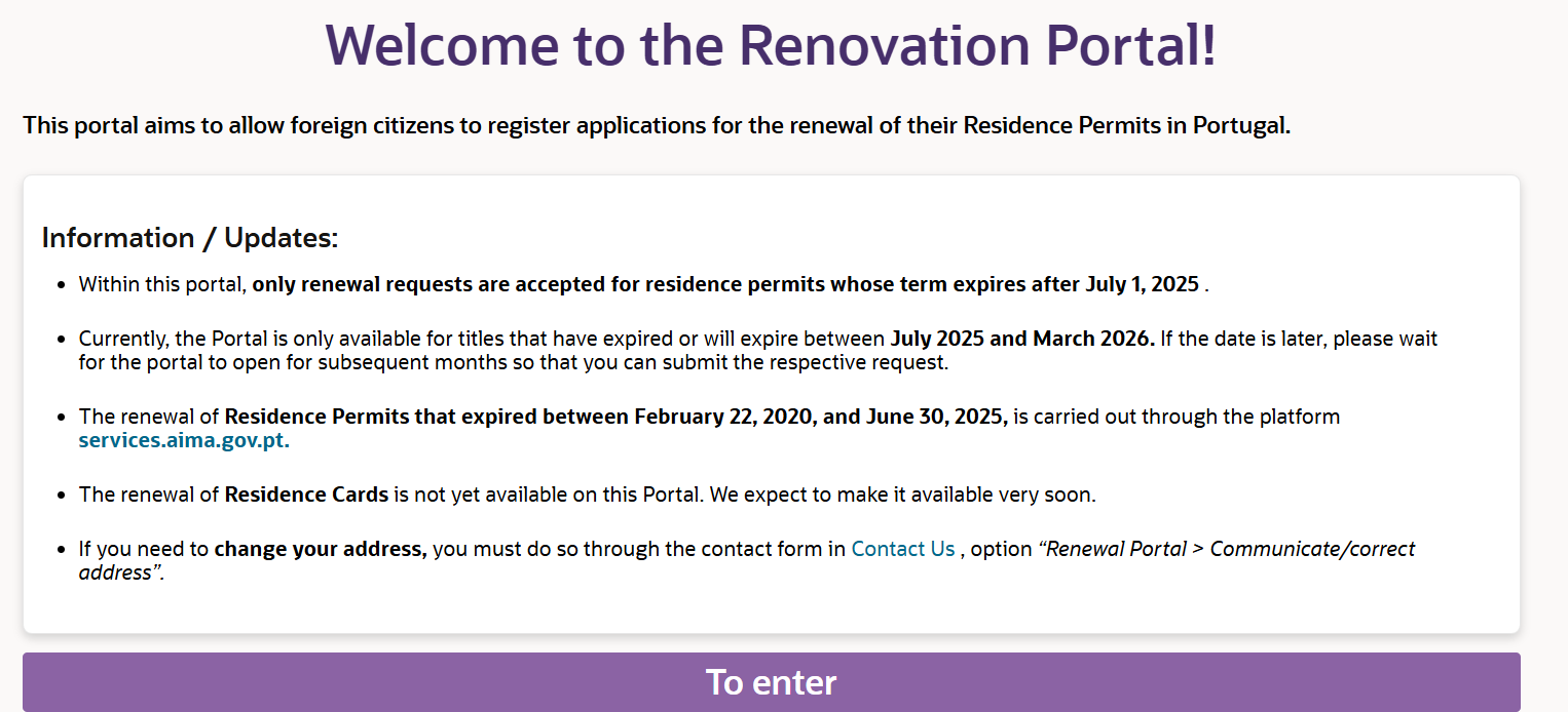 7 Nov 2025 – Renewal appointment in Lisbon (applied for PR under Article 80, non-GV type)